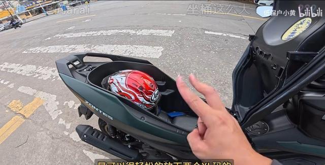 虽然追求轻量化和性能,升仕150X在实用性上并没有妥协。 坐桶空间可以容纳两顶头盔,这在运动取向的踏板车中很难得。 测试者展示的工程样车可以轻松放入一顶全盔和一顶半盔。